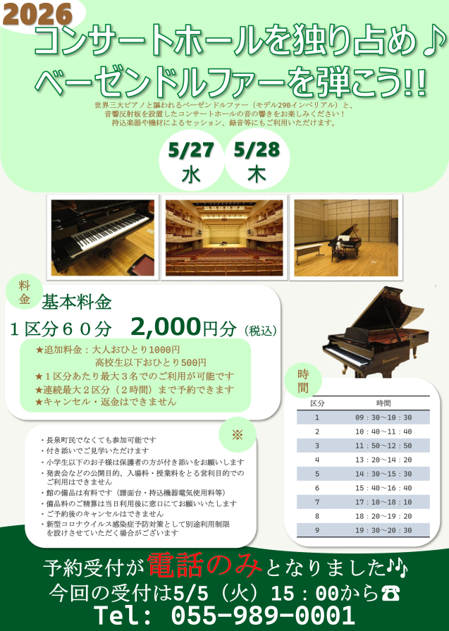 | コンサートホールを独り占め♪ ベーゼンドルファーを弾こう!! | ||